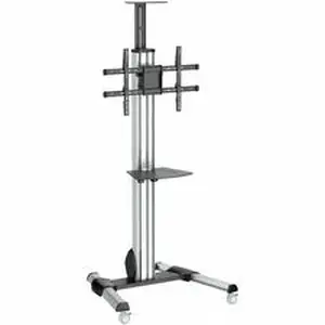 This portable TV cart makes it easy to create a mobile media center, providing a convenient and cost-effective way to share A/V equipment between rooms. Engineered with a sleek and sturdy design, the TV cart provides a secure mount for a 32" to 75" TV (with maximum weight of 88 lb./40 kg) and a removable multi-media shelf for placing your computer, media player or keyboard. It also includes a camera shelf for web-conferencing.