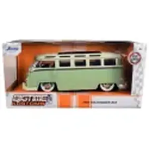 Experience the charm of the 1962 Volkswagen Bus with this stunning 1/24 scale diecast model by Jada. The model features a captivating light green and cream finish, capturing the essence of classic automotive design.