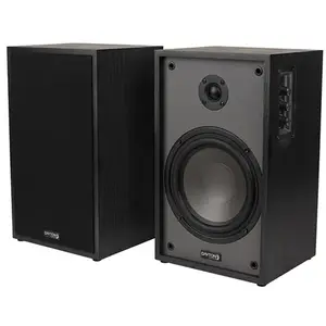 • Built-in Class D amplifier boasts 140 watts of peak power (70 watts RMS) enabling B65A speakers to outshine others in their class, offering ample room to crank up the volume without sacrificing clarity or introducing unwanted distortion;• Frequency response: 55 Hz to 20 kHz;• Bluetooth(R) streaming - equipped with Bluetooth(R) v5.0 to stream wirelessly from any Bluetooth(R)-enabled device for ultimate convenience;• RCA line input - you can connect them directly to turntables, TVs, computers, or other active and passive speakers;• Custom-designed 6.5-in. poly woofers enable extended bass output for full-range sound, making music and movies more exciting ;• 1-in. silk dome tweeters reproduce mid/high frequencies in stunning detail with lifelike imaging;• Side-mounted controls - adjust bass, treble, and volume conveniently without accessing rear panel;• Vintage-inspired design - classic 2-tone vinyl finish and extended fabric grilles complement any decor;• Compact build - small footprint fits seamlessly into desktops, shelves, or tight spaces;• Dimensions, each: 13 in. H X 7.8 in. W x 6.7 in. D;• 5-year limited warranty;• Includes active speaker, passive speaker, 2 speaker grilles, power cord, 3.5-mm aux to RCA cable, 10-ft. speaker wire, 8 adhesive foam feet, and manual;• Pair;