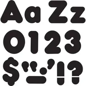 Convenient, reusable and easy to use, these vibrant letters are great for student work displays, bulletin boards, signs, banners, news boards, learning activities, labeling and much more. Durable, 4" letters and symbols offer a fade-resistant color for long-lasting use. Set includes 50 uppercase letters, 82 lowercase letters, 20 numerals from 0 to 9, 29 punctuation marks, and one blank sheet.