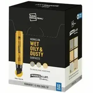 Marketing Information:Get the job done with this 12 pack of Avery 29866 Marks A Lot UltraDuty markers with XL wide chisel tips. Built for situations where standard permanent markers just aren't enough, Avery Marks A Lot UltraDuty markers are perfect for construction sites, warehouses, workshops and more. The bold fast-drying ink works great on plastic, wood, metal, corrugate and concrete. The durable XL chisel tip also works on abrasive, dusty, wet and oily surfaces without clogging. The angled 18mm chisel tip allows you to write lines in varying widths to switch from narrow to bold on the spot. Specially engineered to resist water, abrasion and smearing, the heavy duty ink makes sure that your writing will last through even the harshest of conditions. The durable ink is designed to last and won't dry out when the cap is left off for up to 72 hours. The cap also features a useful anti-roll bump to help prevent rolling. Includes 12 black Avery markers. Please Note: The industrial-grade ink has a stronger odor than traditional permanent markers.
