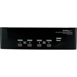 Share a keyboard and mouse as well as 1 VGA and 1 DVI displays monitors between 4 multimedia computers. Compatible with the HP 2012 series docking station. Supports resolutions up to 1920x1200. USB 2.0 hub and MicAudio ports. Quad system control for a single user workstation with dual monitors increasing productivity in the office or at home.