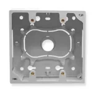 - White 2 Gang Junction Wall Plate Mounting Box - Fits standard NEMA double gang electrical boxes - Multiple mounting options including adhesive backings and screws - Integrated internal routing posts and cable management system with evenly spaced cable tie anchor points - Rear cable entry for clean external appearance - Rugged and durable construction - Raceway knockouts integrate with raceway systems - Used with ICRW11, ICRW12, and ICRW13 raceway systems - Accommodates all ICC faceplates