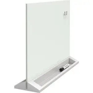 Enhance your personal workspace with this desktop glass dry-erase panel. The self-standing panel makes for an attractive desk partition that enhances privacy, and also serves as a convenient note-taking solution.