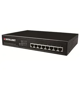 -The Intellinet 8-Port Gigabit Ethernet PoE+ Switch (560641) is designed to pass both data and electrical power to a number of PoE-compatible devices via standard Cat5e or Cat6 network cables. Equipped with eight Gigabit Ethernet ports, this switch can power wireless LAN access points and bridges, VoIP phones, IP video cameras and more while delivering network speeds of up to 1000 Mbps.