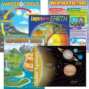 Create inviting, exciting spaces with eye-catching charts and lots of learning with these Earth Science Learning Charts. Convenient five-chart pack includes Solar System, Weather Factors, Layers of the Earth, Geography Terms and Water Cycle. Each colorful chart offers the extra value of a reproducible on the back. Durable charts are ideal for teaching students in second-grade to ninth-grade.