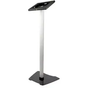The secure tablet stand features a lockable holder that helps protect your tablet from loss or damage. Plus, you can screw the base of the steel and aluminum stand into the floor, to create a fixed-in-place holder.
