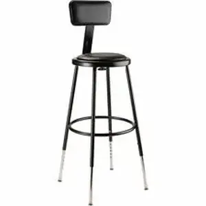 Marketing Information:The fortified construction and soft comfort of the 6400-10 Series Heavy-Duty Padded Stools with backrests are ideal for hands-on educational settings like art rooms, science labs, home economics or shop classrooms. These reliable stools feature a sturdy frame of 18-gauge steel tubing securely welded to a 14"-diameter seat pan. Riveted through the steel pan is 0.5"-thick black vinyl cushioning that provides years of dependable use. The footrest ring is securely bonded to each leg with four spotwell contact points. Height-adjustable legs extend from 24.5"-32.5" in 1" increments, and adjustable padded backrests can be moved 2" up/down and forward/back.