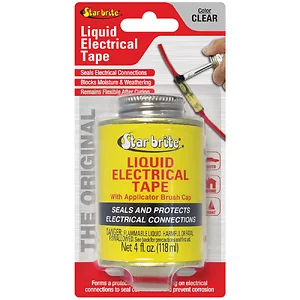 Wires or terminals to be sealed must be clean and dry. Squeeze Star brite® Liquid Electrical Tape onto the electrical connection area. Allow to dry for 5 minutes and apply a second coat if a greater thickness of seal is needed. Additional coats may be applied at 5-minute intervals to build up extremely thick protection. The product fully cures in 24 hours.