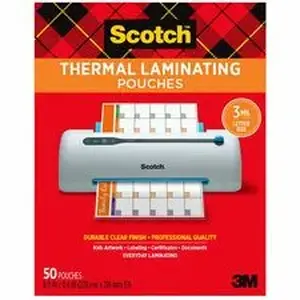 Marketing Information:Laminating pouches are designed for use with the 3M Scotch Thermal Laminator or any standard, thermal-pouch laminator. Pouches provide instant, two-sided protection for frequently handled or referred to items. Photo-safe pouches are clear to let important information show through with a professional finish. Preserve and protect documents, awards, signs, calendars, certificates, children's artwork, schedules and more.
