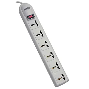 The Protect It!(R) SUPER6OMNI D offers economical AC surge suppression for full protection of 220-250V workstations, desktop PCs, telecom systems and other sensitive electronics. Built-in AC surge suppression shields connected equipment from damage and performance problems due to transient surges. The SUPER6OMNI D offers six universal outlets and a 1.8-meter AC line cord with German/French plug. Internal shutters offer additional safety. AC suppression rated at 750 joules shields equipment from surges and line noise. Lighted on/off switch with integrated circuit breaker provides power control over connected equipment. Right-angle outlets keep connected cords from blocking adjacent outlets. Attractive light gray high-impact housing.