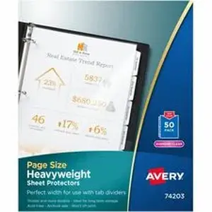 Diamond-clear, sheet protectors allow you to protect your papers without obstructing your tab dividers. Page-size sheet protectors offer sturdy protection of your three-hole punched pages without an extended binding edge that makes tabs hard to find. Load from the top. Durable material withstands the rigors of use in a three-ring binder. Acid-free, archival-safe material keeps your pages in top condition and won't lift print from papers. Each page holds one sheet of three-hole punched paper.