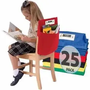 Simply slide this one-pocket Seat Sack over a student's chair for quick, convenient, instant organization and storage of school materials. Elastic added across the entire back is designed for classrooms with a large range of chair backs and the hard-to-fit chairs that have measurements of 14" or less across the top of the back. Elastic helps to hold the seat pocket in place on the chair. Roomy storage pocket features a 2" gusset to expand for extra storage. Clear plastic sleeve holds a replaceable name tag. Machine-washable Seat Sack is made of a durable, premium, high-quality, poly/cotton laminated material that is sewn and backstitched. It is certified flame-resistant, CPSIA and Prop 65 and meets additional CA and EU standards. Use in the classroom, home office, library, music room, church, synagogue or anywhere extra space for chair storage is needed. Set includes a name card for each Seat Sack.