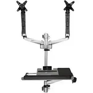 Increase your productivity, with a workstation that fits the way you work. Designed for a wide range of motion, this dual monitor wall-mounted computer workstation is easily adjustable with independent arms for your monitor and keyboard.