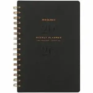 Signature Collection Planner makes it easy to stay on track, get ahead on your goals and reclaim your time all within one sleek and sophisticated planning tool. Dated planning pages range 13 months from January to January. Modern, simple cover with subtle date badge has a professional look. Plan your schedule without fear of distracting ink bleeding. High-quality paper features ink bleed-resistance to keep your planning pages neat. Detail your work week using the ruled weekly planning pages with space for notes to stay on top of your busy schedule. Tabbed monthly overviews help you keep an eye on the big picture and get a jump on future plans. Special pages help you do more and include a holiday list, three-year reference calendar, event calendar, contacts, notes and a double-sided poly pocket. Durable cover features bronze twin-wire binding to help prevent snags and secure pages.