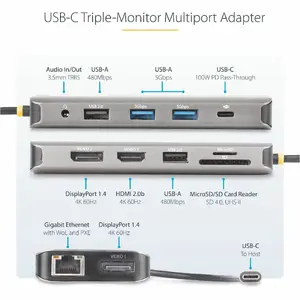 Startech.com 154B-USBC-MULTIPORT USB C Triple-Monitor Adapter