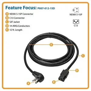 Eaton Tripplite P007-012-15D Computer Power Cord Right-Angl