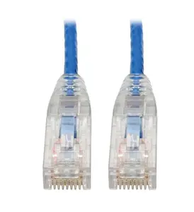 - Cat6 UTP patch cord rated for high-speed 1 Gbps communications - Over 38% slimmer than standard Cat6 cables to increase airflow in full racks - Easy to route around corners and through crowded cable management panels - Snagless RJ45 connectors prevent tabs from being damaged during installation - Color-coded blue for fast, easy identification in a crowded rack or workstation