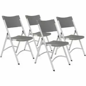 Made for true efficiency and stability, these 600 Series Folding Chairs are blow-molded, resin-plastic folding chairs that feature a heavy-duty, powder-coated 19-gauge tubular frame and a large contoured seat. They also have a backrest for added comfort. Two cross braces, both in front and in back, provide extra support. V-tip stability plugs provide added reinforcement at the frame's junction and replaceable glides prevent floor damage. Lightweight for easy transport, they are stain-resistant and perfect for easy set-up and take-down, indoors or outdoors. The 600 Series meets MAS Certified Green and ANSI/BIFMA standards.