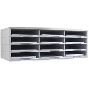 Marketing Information:12-compartment organizer brings order to your home or office clutter. The polystyrene construction provides a durable yet lightweight organizer that can hold a combined weight of 60 lb. Built-in label holders ensure a professional appearance and functional use. Large-capacity compartments hold up to 6,000 sheets of paper to easily organize large amounts of files and documents. Space-saving design is stackable up to six units high to provide up to 72 different compartments.
