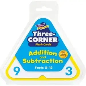 Self-checking cards teach addition, subtraction and the relationship between them. Ideal for groups or individuals at school, home or travel. Set includes 48 two-sided, 5-1/2" triangular cards that focus on numbers through 12 and a sturdy storage box. Durable, easy-to-hold cards are designed for teaching students ages 6 to up.