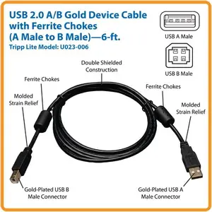 Tripplite U023-006 EATON, 6FT USB 2.0 HI-SPEED A/B DEVICE CABLE FERRITE CHOKES M 6'