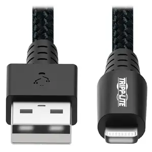 Heavily Reinforced Cable Charges and Syncs Your Latest-Generation iPhone, iPad and iPod This heavy-duty USB sync/charge cable (M/M) connects your iPhone, iPad or iPod to the USB-A port on a computer, car charger or wall charger. It allows you to charge and power your Apple device, while simultaneously synching and transferring data at USB 2.0 data transfer speeds up to 480 Mbps. The cable is backward compatible with previous USB generations, allowing you to use it with older equipment. Constructed Using UHMWPE and Bulletproof Aramid Fiber Designed to Last Charging cables used with mobile devices are often pulled, strained and generally abused, sometimes to the point of failure. To counter the stress of daily abuse, the super-robust M100-006-GY-MAX is constructed using UHMWPE and Aramid fiber to reinforce the conductors inside the cable. The double-braided nylon jacket helps maintain top performance and long life, while the enhanced UHMWPE and Aramid protection stands up to the strain of rigorous and frequent use. Integral strain relief gives the cable extra flexibility, reduces stress, and helps the cable move freely without cracking or breaking loose from the connector. MFi-Certified for Broad Device Compatibility The 5V 2.4A (12W) Lightning cable is MFi-certified for use with the latest generation of iPhone, iPad and iPod devices. It's compatible with iPhone (5, 5c, 5s, 6, 6 Plus, 6s, 6s Plus, SE, 7, 7 Plus, 8, 8 Plus, X, XR, XS, XS Max), iPad (4th, 5th and 6th generations), iPad mini, iPad mini 2, iPad mini 3, iPad mini 4, iPad Air, iPad Air 2, iPod Touch (5th and 6th generations), iPad Pro 12.9 inch (1st and 2nd generations), iPad Pro 10.5 inch and iPad Pro 9.7 inch. The USB-A plug connects to any computer or wall charger with a USB port. Reversible Lightning Plug Connects in Either Direction Connect the reversible 8-pin Lightning plug to your Apple device for charging and synchronizing. The fumble-free plug connects in either direction to ensure fast, easy connection every time. The cords six-foot length allows you flexibility in placing your iPhone, iPod or iPad with respect to the connected computer or charger.