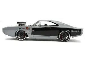 Toys 31668 1970 Dodge Charger R/T with Blower Gray Metallic and Black Bigtime Muscle 1/24 Diecast Model Car by Jada 3166