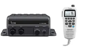 Icom's M410BB is a flexible black box fixed mount that provides VHF communications for vessels with limited helm space. The supplied CommandMicTM controls the radio for essential communications on the water.