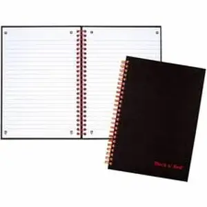 Marketing Information:Wirebound notebook has a hardback, laminated, wipe-clean cover to withstand extensive use. 24 lb. quality paper ensures that you can write on both sides. Each sheet is ruled and perforated for easy tear-out. Fashionable black cover is fastened with red twin wire. Twin-wire binding allows book to lie flat. Notebook contains 70 sheets.