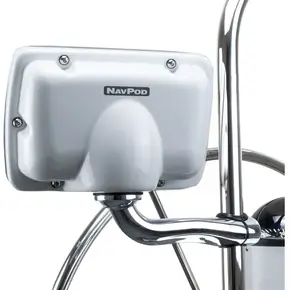 RailMount NavPods are best used for mounting of an autopilot control, sailing instrument, or small chartplotter onto an existing pedestal guard. Fits onto any 1 in or 1.25 in diameter tube. A Nickel Chrome-Plated Stainless Steel arm is used to mount a NavPod. The NavPod can rotate 180 degrees for easy viewing while sitting under the dodger on a rainy day. All wiring runs from the NavPod, down the center of the stainless steel arm, and into the pedestal guard. This application provides a clean and sturdy installation for electronics, without replacement of the pedestal guard.