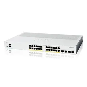 The Cisco Catalyst 1200 is a high-performance switch designed for efficient networking in various environments. With 24 Gigabit Ethernet ports that support Power over Ethernet (PoE) and 4 SFP uplinks, this switch provides flexibility and reliability for your networking needs.