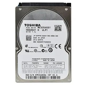 Third Party Refurbished Toshiba HDD2E61 MK5056GSY 500GB SATA/300 7200RPM 16MB 2.5 Hard Drive