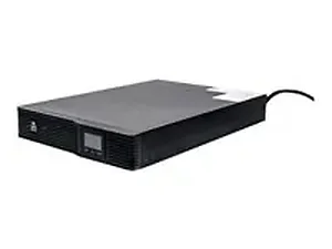 This UPS is equipped with advanced features, including a rotating LCD display for easy monitoring in any configuration, and offers up to 10 minutes of battery backup time at half load, allowing for safe system shutdowns during outages.