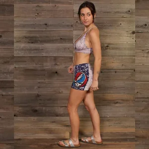Introducing the Hand Painted Batik Booty Shorts, crafted from a comfortable Cotton Lycra blend. These shorts feature a unique 'Steal Your Face' hand-painted design, perfect for making a statement.