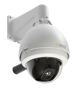 The QSEE Indoor/Outdoor Speed Dome Camera provides high-definition surveillance for your home or business. Designed for both indoor and outdoor environments, this camera features a robust housing that withstands the elements while delivering crystal-clear footage even in low light conditions.