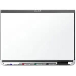 Prestige 2 DuraMax porcelain board features Quartet's most durable writing surface. Exceptionally resilient and smooth, the porcelain surface will not ghost, stain, scratch or dent over time despite years of heavy use. The surface of this whiteboard is also magnetic so that it can double as a magnetic bulletin board. With a stylish metal frame and attached marker tray, this top-of-the-line board is a useful addition to any office space. Hang board quickly and easily on any wall using the included, pass-through mounting hardware. Sleek, graphite finish frame complements any office environment and is made of metal. Whiteboard also features a full-length marker tray that is specially designed to securely hold accessories. Prestige Connects accessories (sold separately) quickly and easily attach to the specialized frame to provide convenient access to board essentials. Minimal cleaning of board surface is recommended. Board includes four Quartet dry-erase markers with chisel tips.