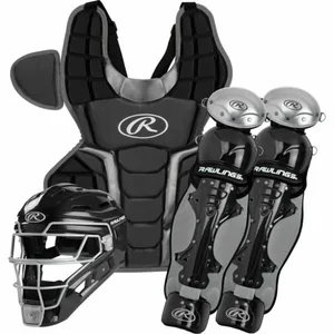 The Rawlings Renegade Catchers Set is designed specifically for aspiring young catchers aged 12 to 15. Featuring a durable and protective design, this set combines comfort and performance, making it ideal for serious players. The hockey-style catcher's helmet provides optimal safety and visibility, while the chest protector and leg guards are engineered for enhanced protection during gameplay.