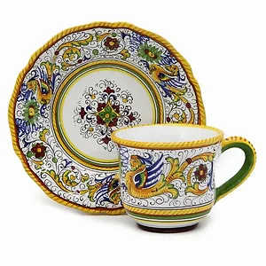 Artistica Italian Gallery RA0004 Raffaellesco Majolica Cup & Saucer - Handcrafted Italian Art
