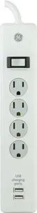 Ge RA19115 4-Outlet Surge Protector with Dual USB Ports - White
