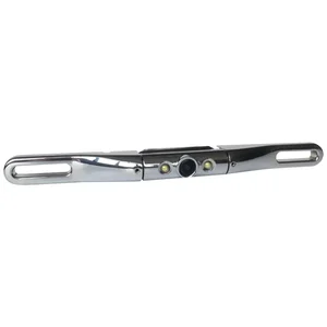 This Boyo Lite Bar-type license plate camera features a 150-degree wide-angle lens and an integrated LED light for enhanced nighttime visibility. Designed for easy installation, it fits standard license plates and provides clear images for safe reversing and parking. Its durable chrome finish adds a sleek touch to any vehicle.