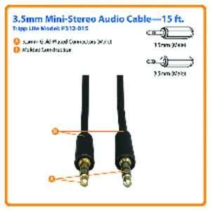 Connect your audio devices with the Tripp Lite 15ft 3.5mm Stereo Audio Cable. This high-quality cable features male connectors at both ends, allowing you to link your speakers, headphones, and other audio devices easily.