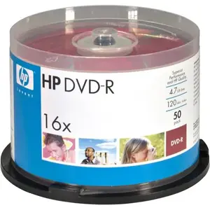 This HP 4.7GB DVD-R printable spindle contains 50 high-quality discs, ideal for storing data, photos, videos, and more. With a printable surface, these DVD-Rs allow for easy labeling and customization to suit your needs.