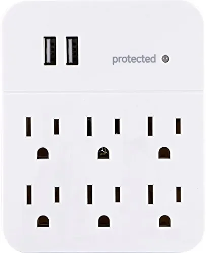 The GE 36735 6-Outlet Surge Protector Wall Tap is designed to provide reliable surge protection and convenient charging options for your devices. With two USB ports and six outlets, it ensures that all your electronics stay powered and protected from surges.
