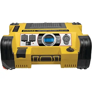 The Stanley Professional Power Station delivers maximum power through a 1,400 Peak Amp 12V jump starter, 500 Watt power inverter, 120 PSI air compressor and multiple household & USB 1A outlets. Perfect for camping, tailgating, and even emergency use, this unit features a backlit LCD screen and reverse polarity alarm.