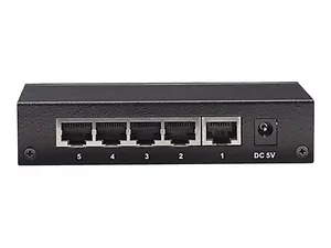 5-Port Fast Ethernet Layer 2 Unmanaged Office SwitchThe Intellinet Network Solutions 5-Port Fast Ethernet Office Switch is perfect for the small and medium-size business looking for a durable switch that is reliable and easy to install. The metal case is more durable than a plastic enclosure, and is very appropriate for locations with potentially harsh environments, such as a warehouse, factory or wiring closet. Five Fast Ethernet auto-sensing ports automatically detect optimal network speeds- Supports any combination of 10 Mbps or 100 Mbps network devices- Green Ethernet power-saving technology deactivates unused ports and adjusts power levels based on the cable length- All RJ-45 ports with Auto-MDIX (auto uplink) support- Supports NWAY auto-negotiation- Store and forward switching architecture- Full/half duplex operation- IEEE 802.3x flow control for full duplex- Zero packet loss back-pressure flow control for half duplex- Packet filtering/forwarding rates: 148.800 pps (100 Mbps), 14.880 pps (10 Mbps)- Supports 1024 MAC address entries Desktop Total Ports: 5 Number PoE Ports: None Fast Ethernet Ports: 5 RJ45 Packet Buffer Size: 48kBytes IEEE Protocols: 802.3, 802.3u, 802.3x, 802.3az