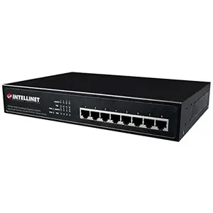 - 8-Port Gigabit Ethernet PoE/PoE+ Desktop Switch-The Intellinet 8-Port Gigabit Ethernet PoE+ Switch (560641) is designed to pass both data and electrical power to a number of PoE-compatible devices via standard Cat5e or Cat6 network cables. Equipped with eight Gigabit Ethernet ports, this switch can power wireless LAN access points and bridges, VoIP phones, IP video cameras and more while delivering network speeds of up to 1000 Mbps. Provides power and data connection for up to eight PoE network devices- Save time and money by delivering data and power via existing network cables- 10/100/1000 auto-sensing ports automatically detect optimal network speeds- IEEE 802.3at/af-compliant RJ45 PoE/PoE+ output ports- PoE power budget of 140 watts- Power output up to 30 watts per port*- Supports IEEE 802.3at and IEEE 802.3af-compliant PoE devices (wireless access points, VoIP phones, IP cameras)- Supports IEEE 802.3at/af detection and short circuit, overload and high-voltage protection- Complies with the IEEE 802.3az (Energy Efficient Ethernet EEE) specification- All RJ45 ports with Auto-MDIX (auto uplink) support- Store and forward switching architecture- IEEE 802.3x flow control for full duplex- Supports up to 8K MAC address entries- 256 kBytes buffer memory- Fanless design ideal for silent operation- Desktop-size metal case- Three-Year Warranty