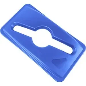 Interchangeable, color-coded top promotes recycling and improves productivity. Lid is one of the Rubbermaid Slim Jim Single Stream Recycling Tops for Slim Jim Containers (sold separately). Different-colored lids indicate which kind of refuse the attached container will accept. This slotted top is blue to encourage paper recycling.