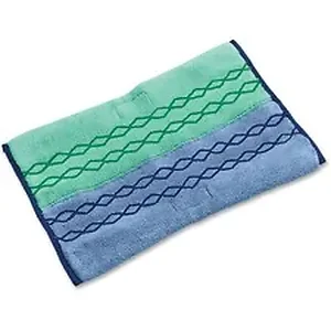 Double-sided microfiber mop pad combines the best features of microfiber mops and string mops. Combine with the Rubbermaid Microfiber Pulse Mop Frame (sold separately) for dusting and damp mopping with one convenient tool. Microfiber pad is proven to remove 99.9 percent of microorganisms. Durable up to 1,000 launderings, bleach-safe dust/wet pad offers superior durability for best cost-in-use. Best-in-class microfiber design provides consistent, streak-free coverage. Different textiles on each side of the mop accomplish different cleaning tasks (scrubbing and general mopping). Double-sided design covers up to 500 square feet with one wring and cleans floors up to 20 percent faster than traditional string mops. Color-coded ribbons help you manage cross-contamination