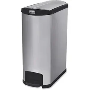 Resin step-on container is perfect for hands-free garbage disposal indoors and holds up to 24 gallons. Increased foot pedal clearance provides easier access and operation. Pedal is located on the side. Slim profile and small footprint maximize space to fit in tight spaces. Internal hinge design prevents wall damage. Quiet, controlled lid closure minimizes noise to enhance guest and patient satisfaction. Liner cinch easily and securely holds polyliners. Slim Jim Step-On Utility Container is also factory mutual certified to ensure fire safety for regulatory compliance and meets OSHA and OBRA standards for worker and environmental safety.